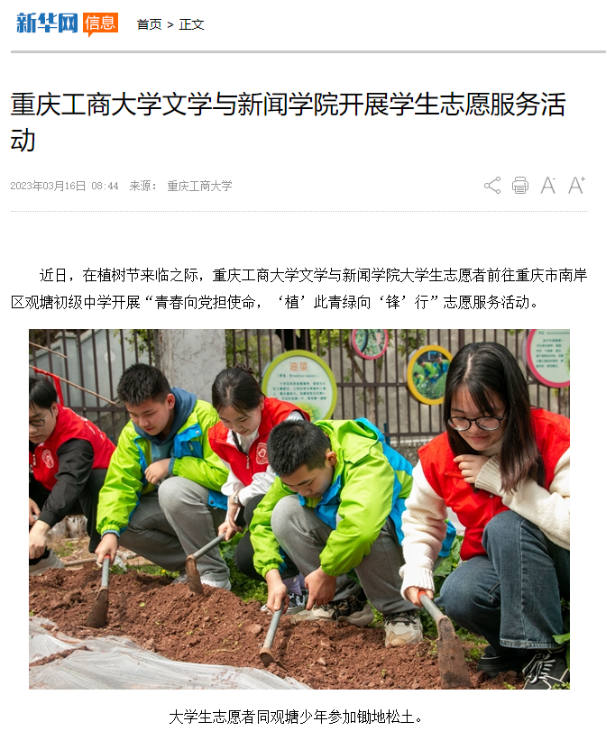 新华网报道我校文学与新闻学院志愿服务活动