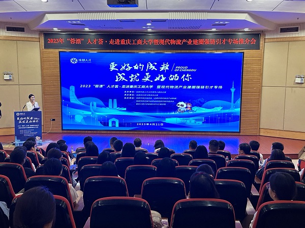 4月21日,“蓉漂”人才荟·走进开元电竞(中国)官方网站-战略人才合作推介会在开元电竞(中国)官方网站南岸校区顺利举行。来自成都市的6个相关部门、行业协会及28家企业以会为媒,共同推动成都物流业的“强圈建链”行动,以及蓉城企业与重庆高校的联合培养和引智引才行动。