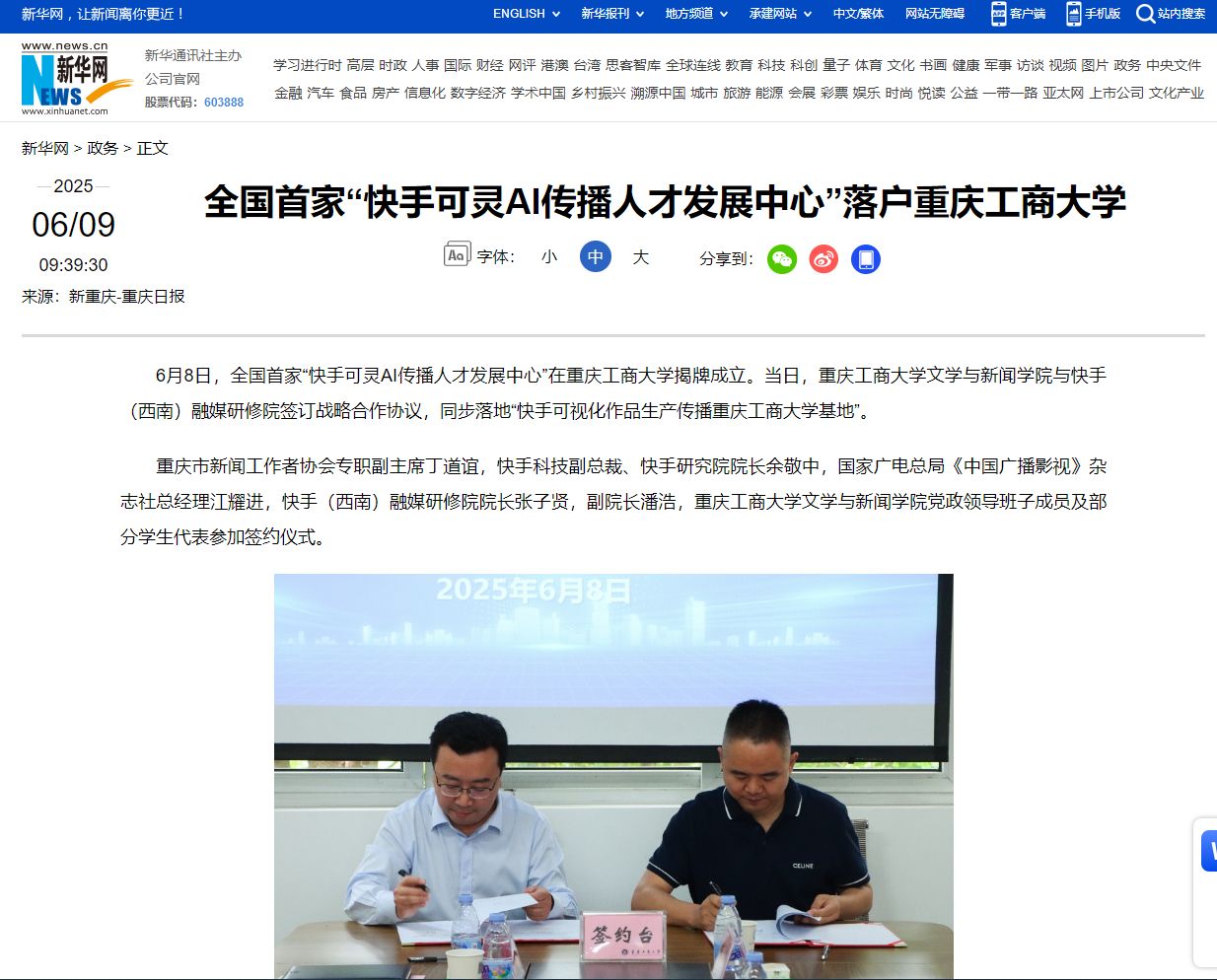 1.新华网:全国首家“快手可灵AI传播人才发展中心”落户开元电竞(中国)官方网站