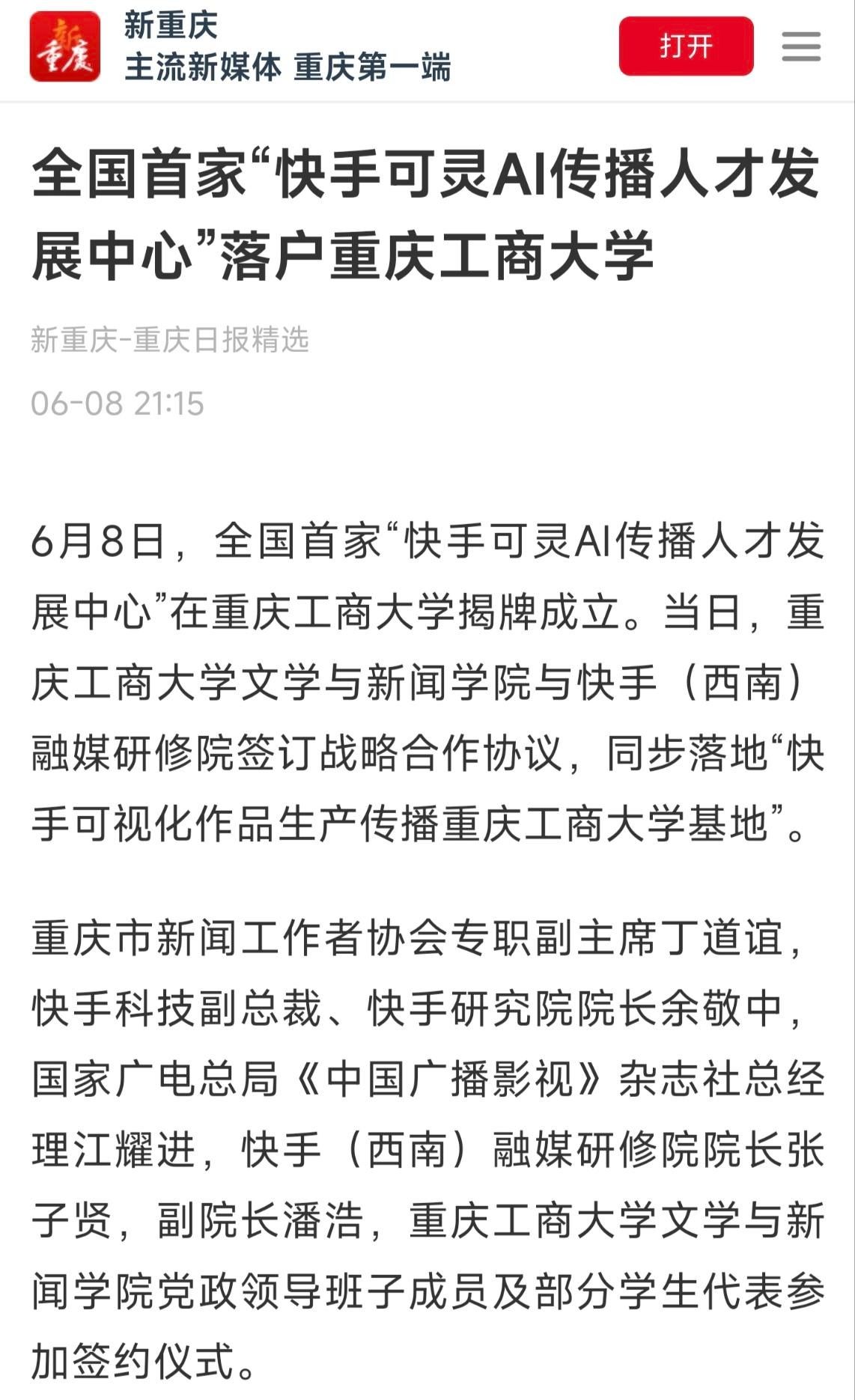 3.新重庆-重庆日报:全国首家“快手可灵AI传播人才发展中心”落户开元电竞(中国)官方网站
