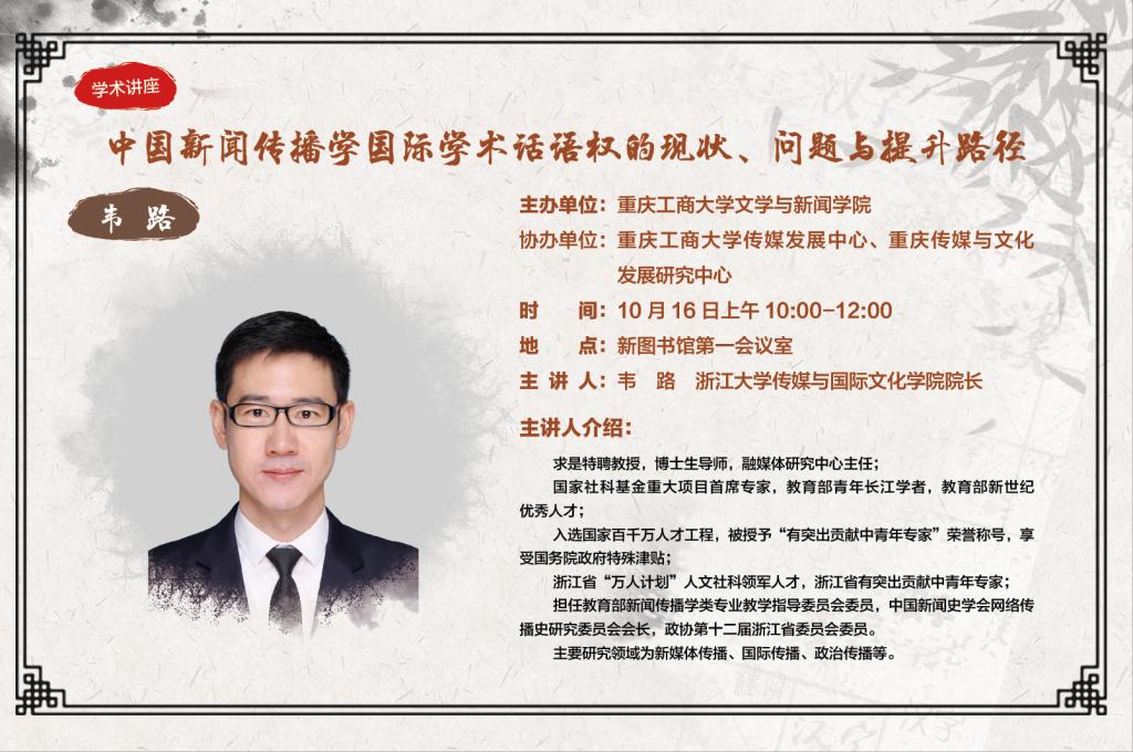 主讲人简介:韦路,浙江大学传媒与国际文化学院院长、党委副书记,求是特聘教授,博士生导师,融媒体研究中心主任;担任教育部新闻传播学类专业教学指导委员会委员,中国新闻史学会网络传播史研究委员会会长,政协第十二届浙江省委员会委员。主要研究领域为新媒体传播、国际传播、政治传播等。