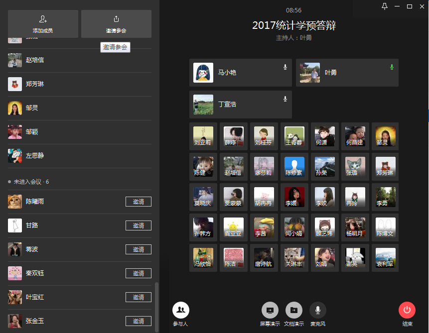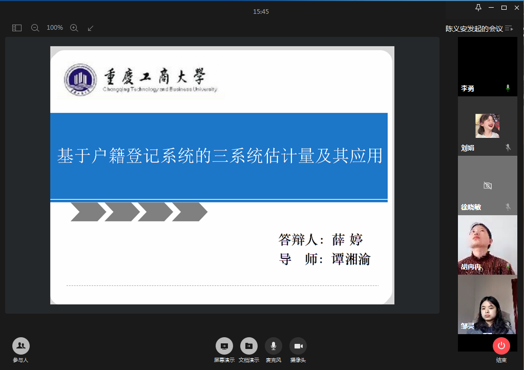 3月20日下午,答辩专家与研究生们线上“云答辩”正式开始。除2020届19名统计学硕士毕业生参加预答辩外,部分2018级和2019级研究生进入视频会议进行了观摩学习。