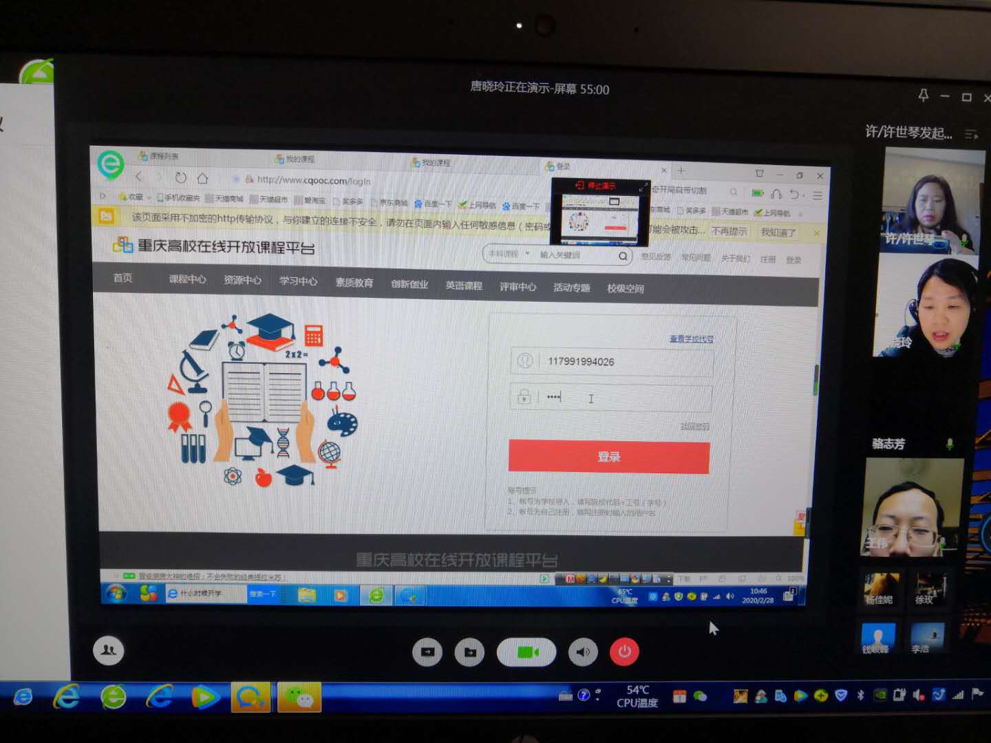 会议由金融系主任许世琴主持,课程组组长骆志芳教授和本学期《金融学》课程全体授课教师参加了会议。会上,许世琴对《金融学》线上课程建设情况作了介绍,该课程依托重庆高校在线平台建设,2018和2019年分别被认定为重庆市和国家级精品在线课程,已经完整开课三次,本次是第四次开课。尽管大多数老师能够熟练运用平台,但由于疫情原因,老师无法与学生当面交流沟通,为了以保证教学的正常运行,提出了几点注意事项:一是要求老师采用“1+1”的教学模式,第一个“1”是运用重庆市高校在线平台,第二个“1”是建立班级企业微信群;二是要求每位授课老师必须提前做好教学准备,调试好线上教学设备、建立企业微信群、提供平台网址及告知登陆流程等;三是做好线上课程考核标准,确保“教学内容不缩水、教学标准不降低”。