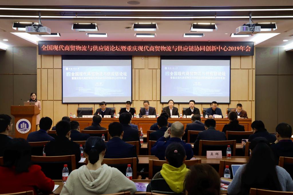11月16日,由我校主办,全国现代商贸物流与供应链论坛暨重庆现代商贸物流与供应链协同创新中心2019年会在我校隆重举行。上海海事大学校长黄有方教授、西南交通大学物流研究院院长张锦教授、重庆市人民政府研究室蔡焘副主任、重庆市口岸和物流办公室胡红兵副主任、重庆市商务委员会孙华培副巡视员、顺丰速运集团公司刘强副总裁、重庆国际物流枢纽园区建设有限责任公司谷永红总经理、我校副校长何勇平教授、副校长柏群教授等90余人参加了会议,本次会议的主题是:陆海新通道建设、物流与供应链协同创新。