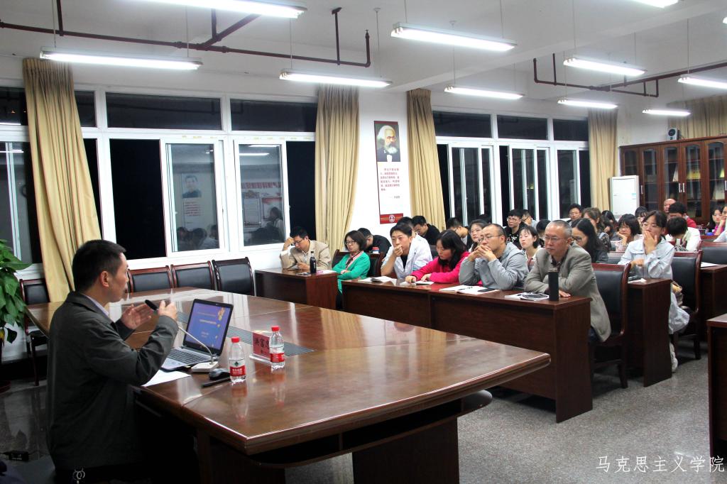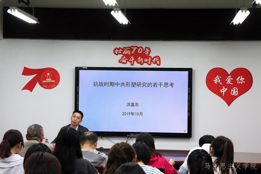 10月11日晚,马克思主义学院马克思主义理论学术话语体系创新研习会第1期在慧智楼91210会议室召开。此次研习会由学校马克思主义学院“中国近现代史纲要”教研部主任洪富忠副教授作“抗战时期中共形塑研究的若干思考”主题报告。马克思主义学院部分老师和2018级、2019级研究生等参加了研讨会。会议由学院院长王仕勇主持。