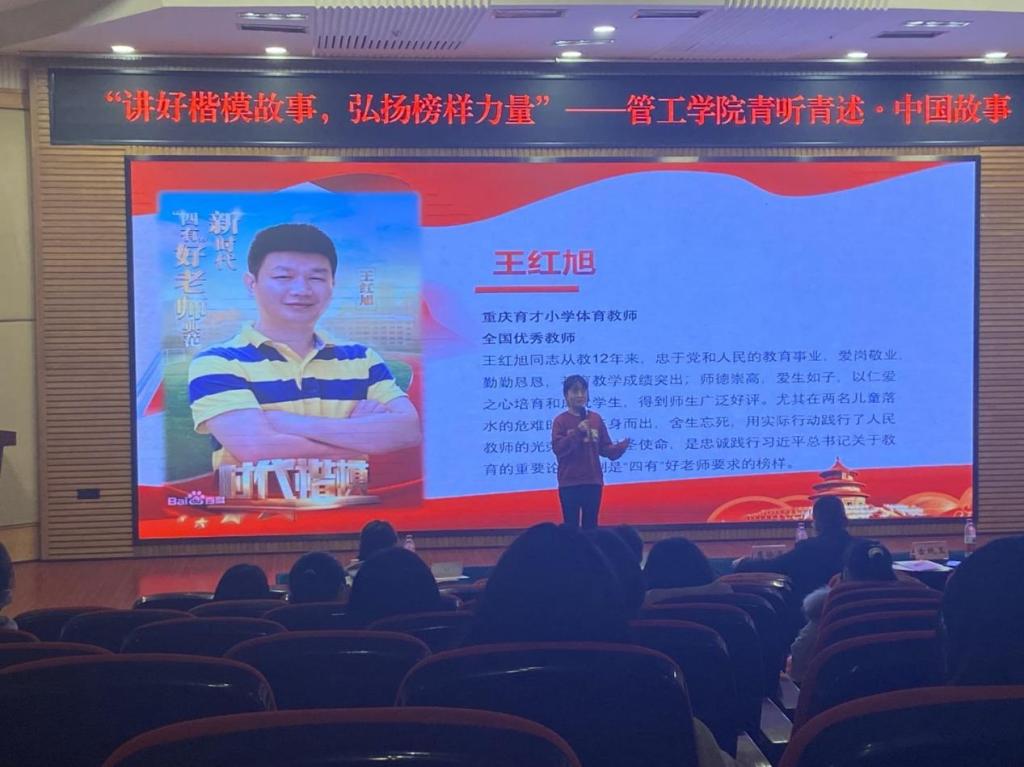 近日,管理科学与工程学院以“讲好楷模故事,弘扬榜样力量”为主题的第三期“青听青述-中国故事”共享讲坛在全院广泛开展。本次活动以朋辈交流楷模故事的方式在学院大学生中弘扬榜样力量,通过浸润式的学习,推进思政教育入脑、入心。