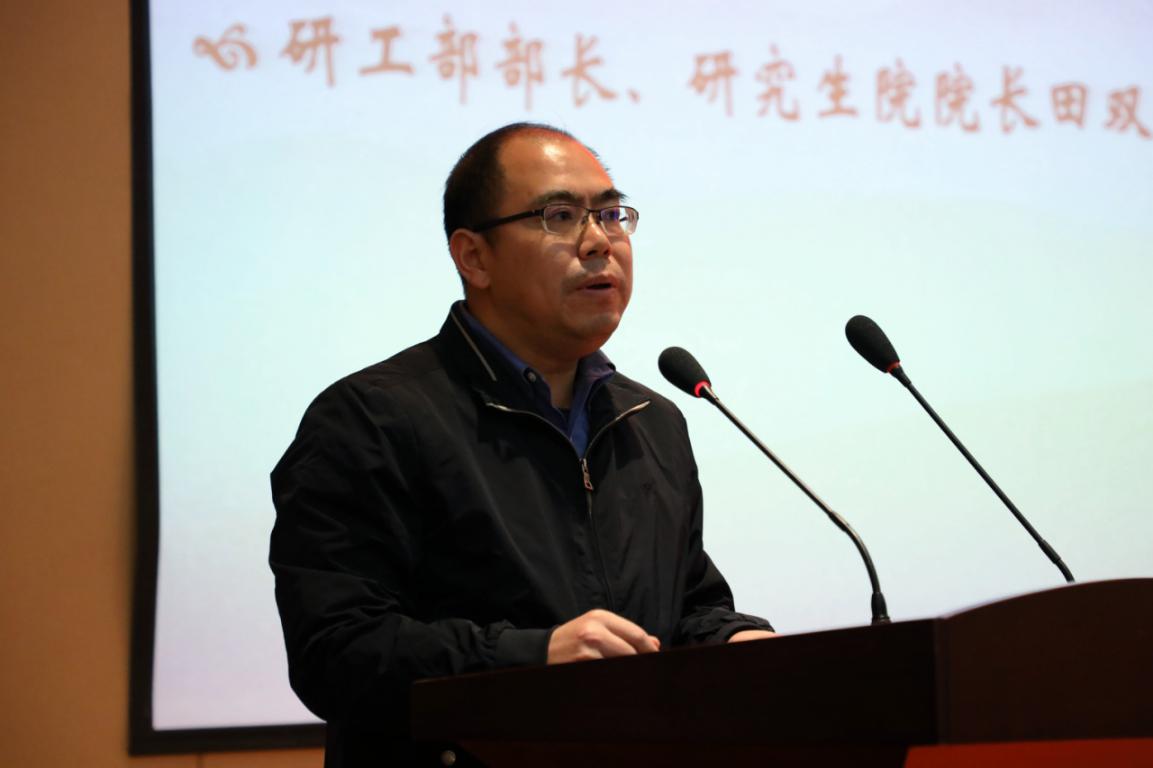 会上,与会人员共同观看了2019年研究生暑期挂职社会实践总结视频。田双全发表致辞。他介绍了我校研究生社会实践项目及开展情况,对研究生开展社会实践项目提出了希望和要求。