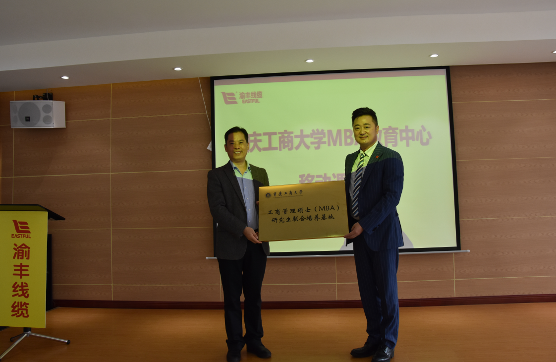 “开元电竞(中国)官方网站-重庆渝丰电线电缆有限公司工商管理硕士研究生联合培养基地”已获批重庆市研究生联合培养基地,在学员参观完企业后,校企双方进行了联合培养基地授牌仪式。在授牌仪式上,曾令果总经理代表重庆渝丰电线电缆公司进行了致辞,他对MBA学员的到来表示热烈欢迎,非常高兴同我校开展MBA研究生联合培养,祝愿MBA研究生联合培养基地早日开花结果。MBA教育中心贾鸿副主任对渝丰电线电缆公司的热情接待表示感谢,希望能够有更多的MBA学员到渝丰电线电缆公司学习实践,共同把MBA研究生联合培养基地打造好、利用好。
