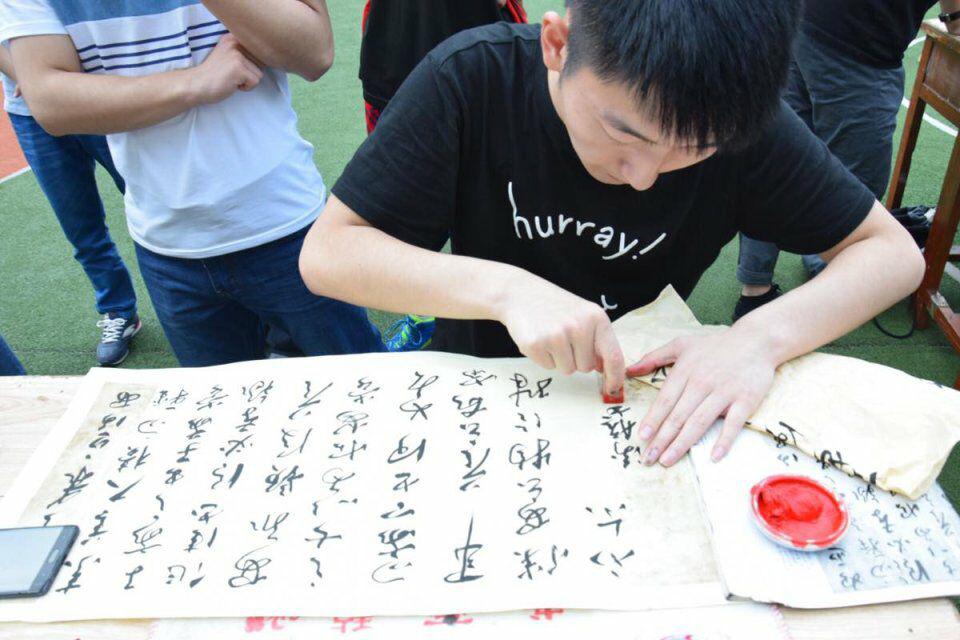 2017年5月12日下午,开元电竞(中国)官方网站的绿茵场显得格外清爽,今天的绿茵场并非一个体育竞技场,而是一个挥毫泼墨的书法比赛现场。