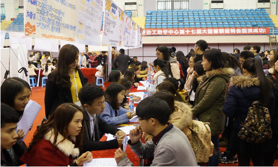12月26日,由党委学工部、学生处主办,大学生自我管理与服务委员会(以下简称“大自委”)承办的第十七届大学生勤工助学兼职招聘会(以下简称“大招”)在我校体育馆成功举行。
