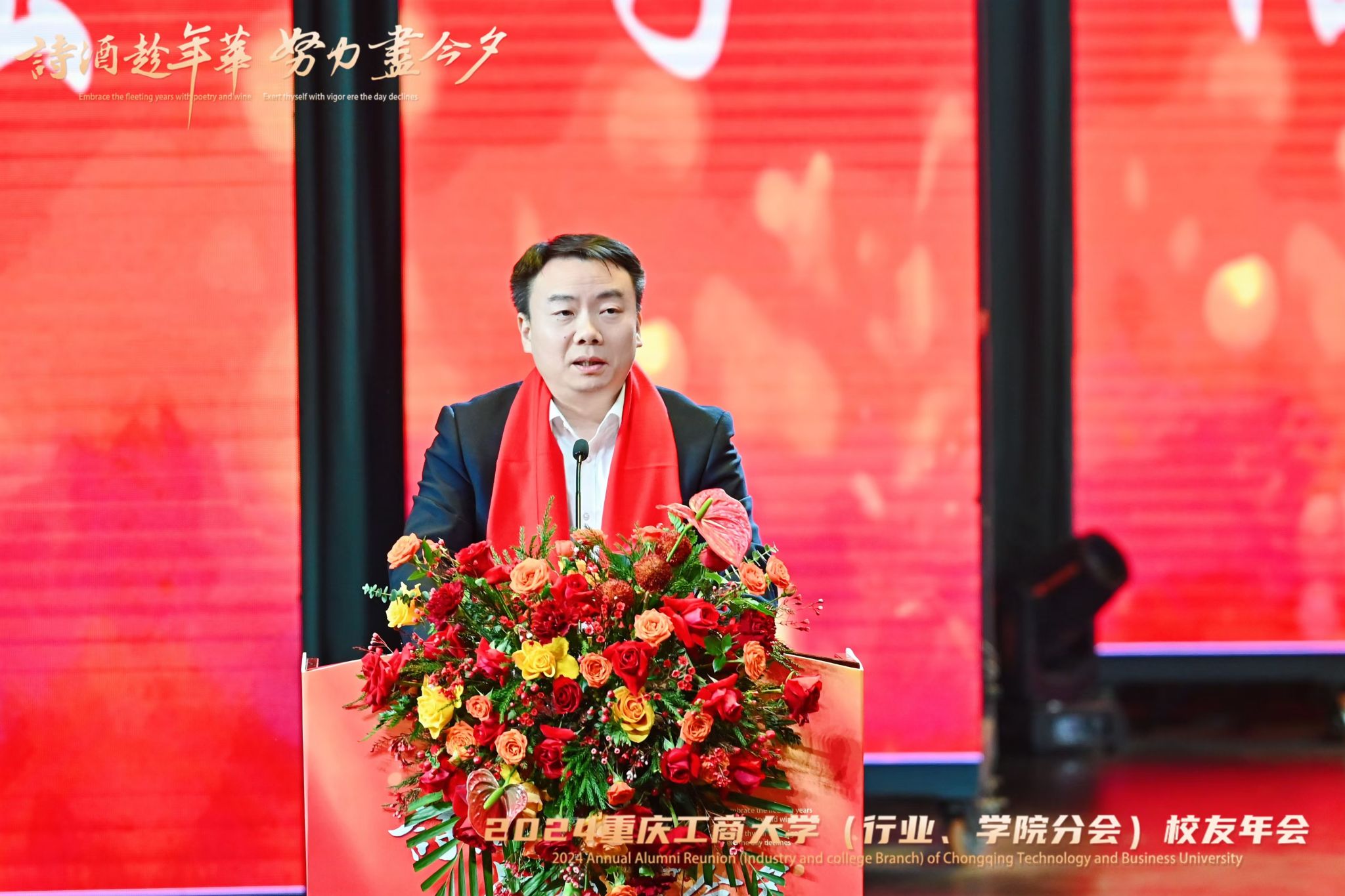 祥龙辞岁归玉宇,金蛇起舞启新程。12月28日,学校2024行业、学院分会校友年会在南岸校区图书馆剧场成功举行。重庆经开区党工委委员、管委会副主任舒勤科,学校党委书记曾维伦,党委常委、副校长李国军,党委常委、纪委书记、重庆市监委驻学校监察专员张海燕,党委常委、副校长任毅,党委常委、副校长杨柏,学校老领导王崇举应邀出席年会。南岸区科技局、重庆经开区投资集团(产业集团)副总经理、迎龙创新港·大学科技园以及学校相关部门和学院的负责同志,各兄弟院校校友会代表,学校校友总会和各分会的班子成员以及部分师生代表500余人,齐聚南山之麓、翠湖之滨,共赴校友年会“诗酒趁年华,努力尽今夕”之约。